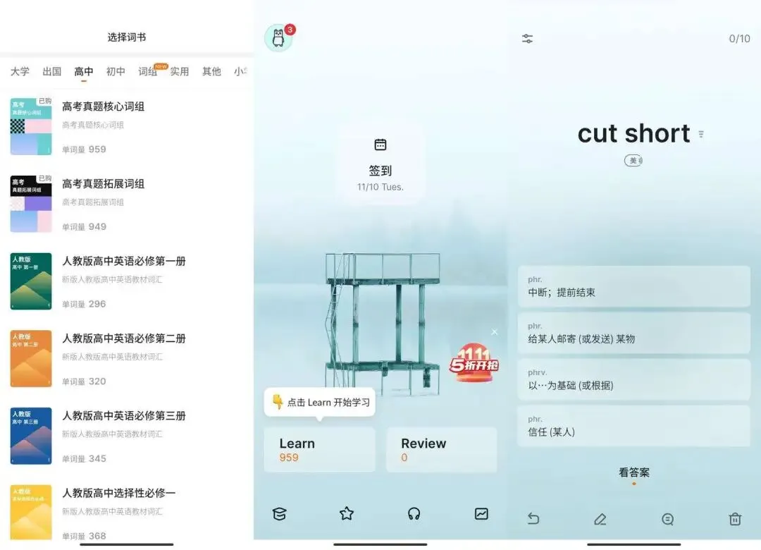 不背单词,专为英语考试定制的一站式解决方案。在海量有声例句创造的真实语境中,用强大的学习理念串联,高效呈现词义和用法,同时借助智能记忆算法,真正科学高效地掌握单词。手机号登录即可使用!