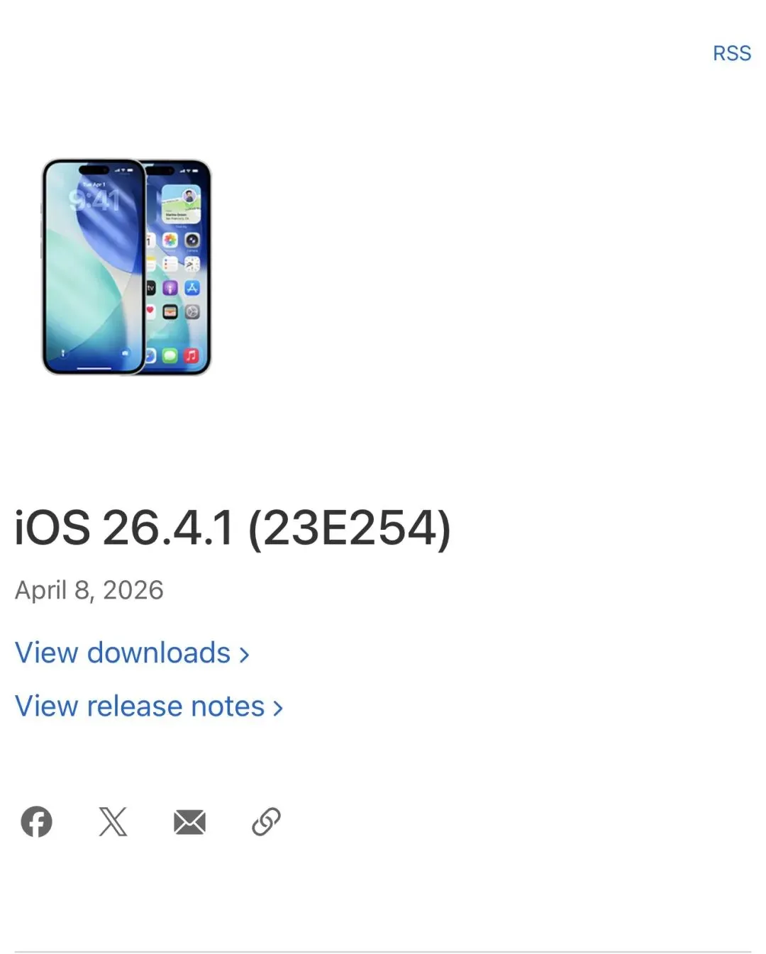 苹果凌晨推送iOS 26.4.1正式版,主打精准修复,解决iOS26.4的集中槽点。