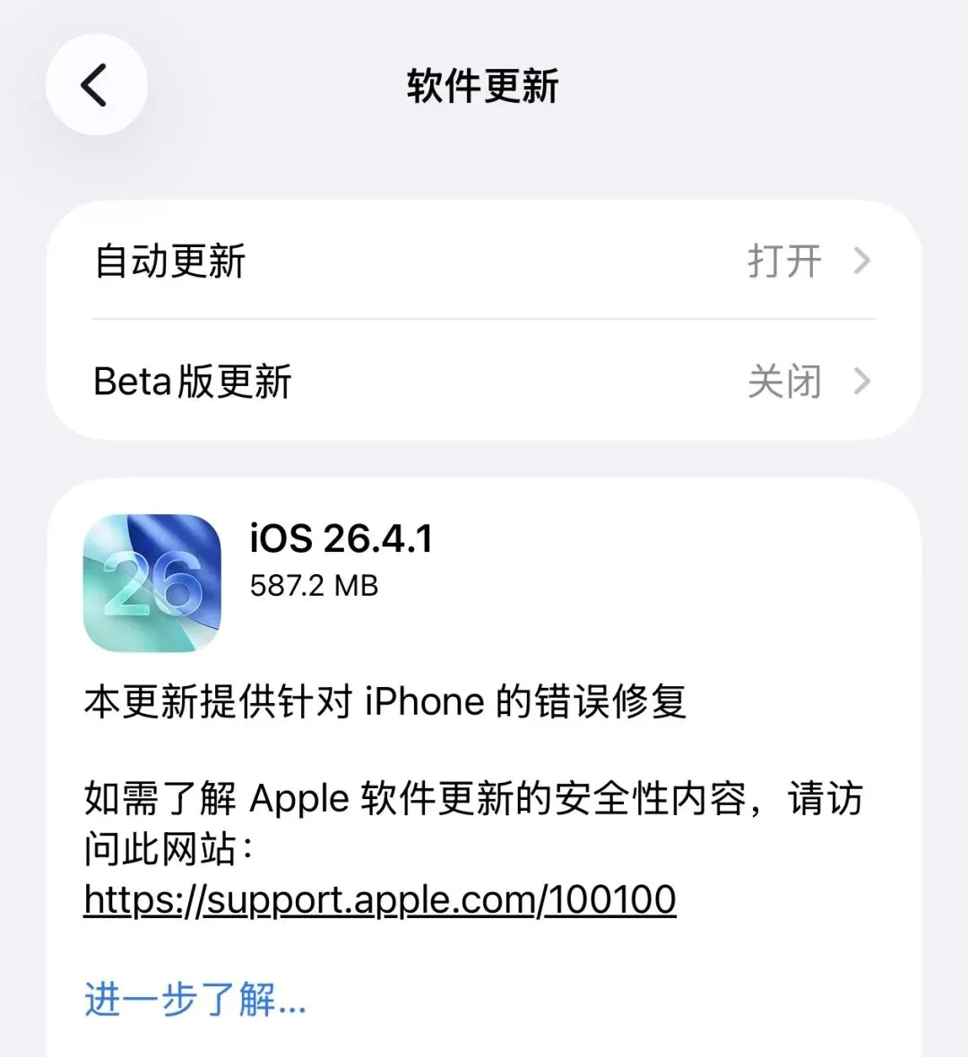 苹果紧急发布 iOS 26.4.1 正式版,修复重要问题!