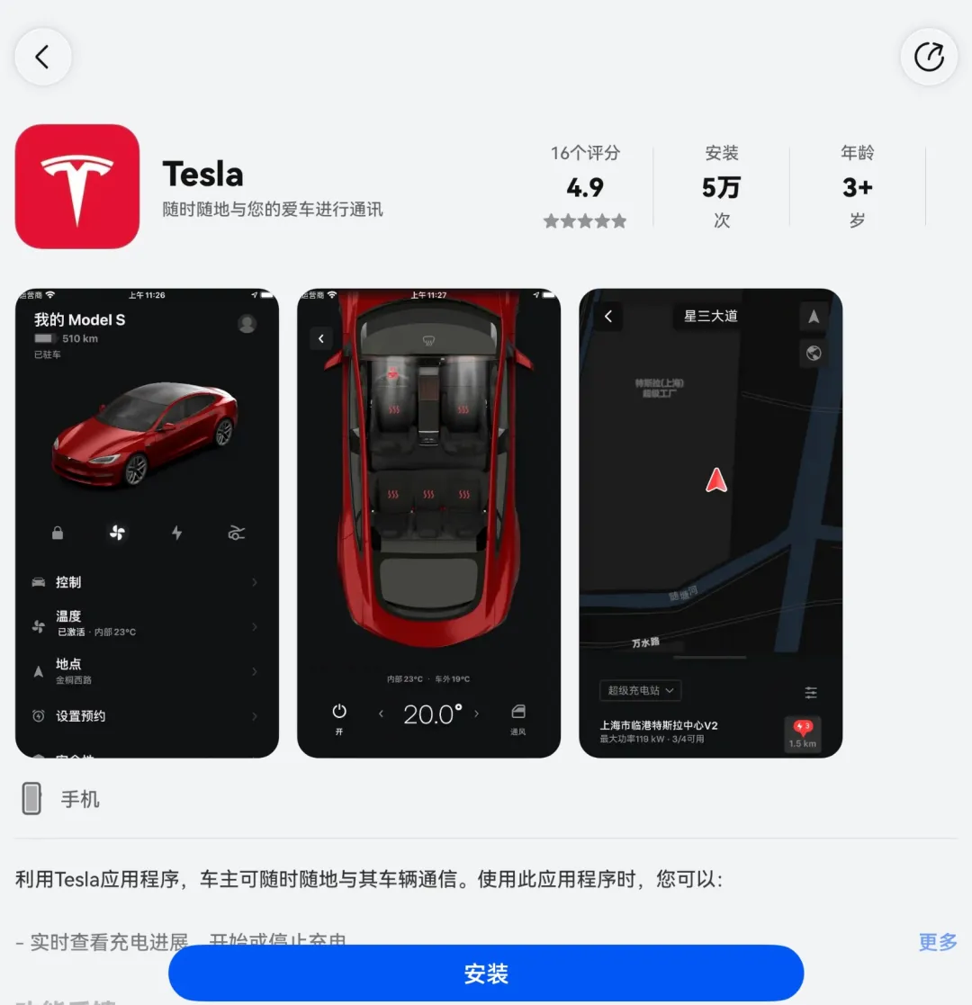据悉,该APP并非安卓版本的简单移植,而是针对鸿蒙系统进行深度优化,覆盖特斯拉Model S、3、X、Y全系车型。核心功能全面升级,支持远程车控、手机钥匙、媒体控制、温度调节等日常用车场景,车主可实时查看充电进度、远程启停充电,提前预热或预冷车辆,还能通过闪灯、鸣笛快速寻车,操作便捷高效。