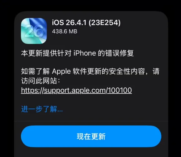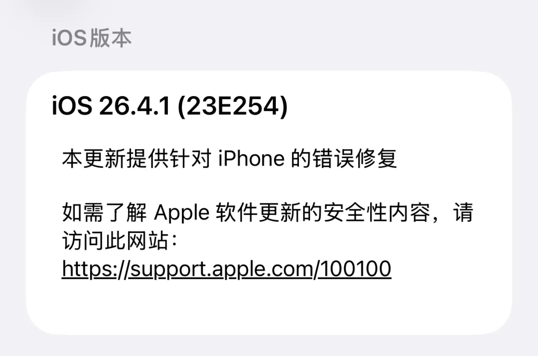 苹果公开 iOS 26.4.1 更新内容,原来如此!
