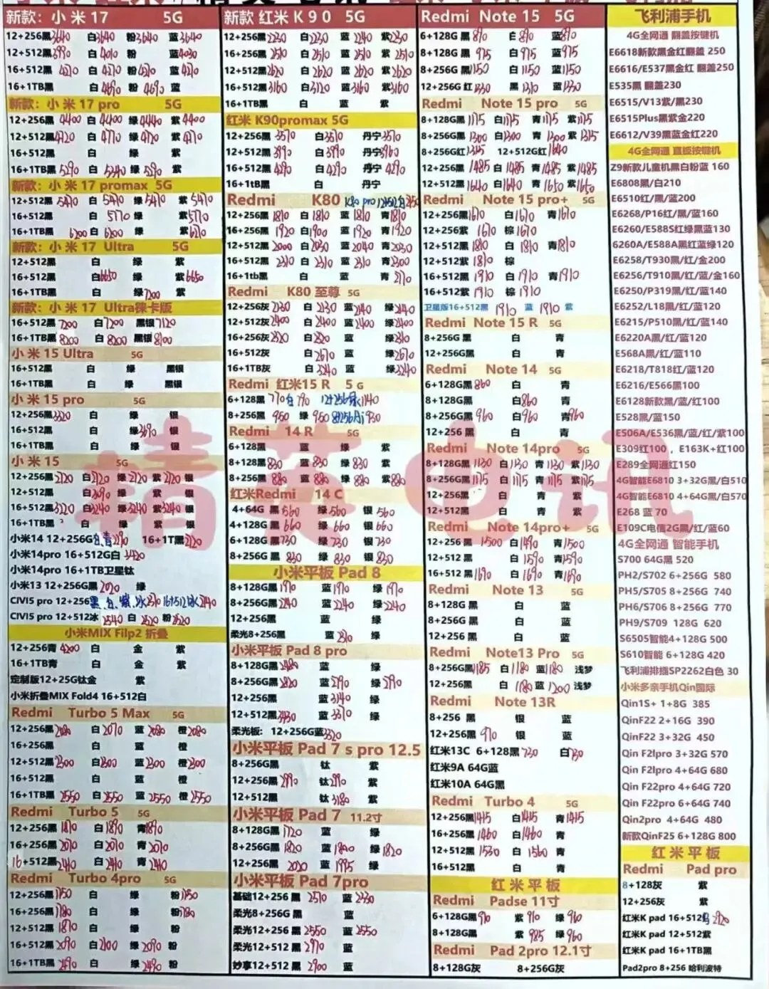 以下报价都是深圳华强北手机批发市场当天的最新批发价格(不含税),报价是我们的批发底价,零售拿货价格需加20~100元不等,京东包邮(量大价格可谈)