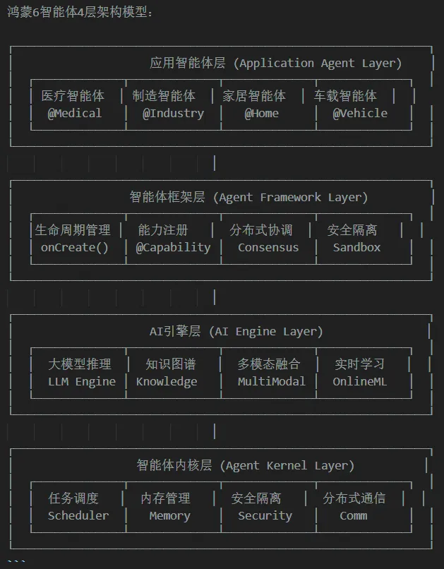 鸿蒙6的 Memory 和 Scheduler 是为矩阵运算和张量调度量身定制的。它不再是简单地防止App卡顿,而是要保证本地AI推理时的极速响应。而底层的 Comm(分布式通信),意味着这些智能体从出生开始,就长在了鸿蒙的“软总线”上,具备跨设备流转的天赋。