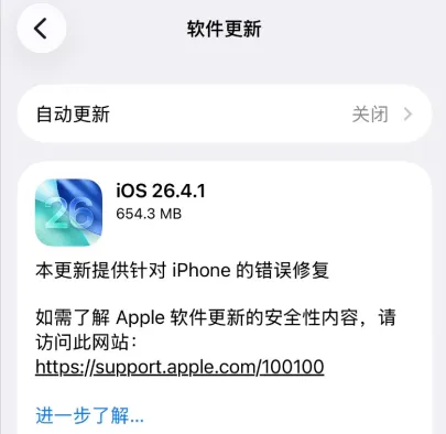 iOS /iPadOS 26.4.1 是一次纯粹的修复型更新,虽无新功能。