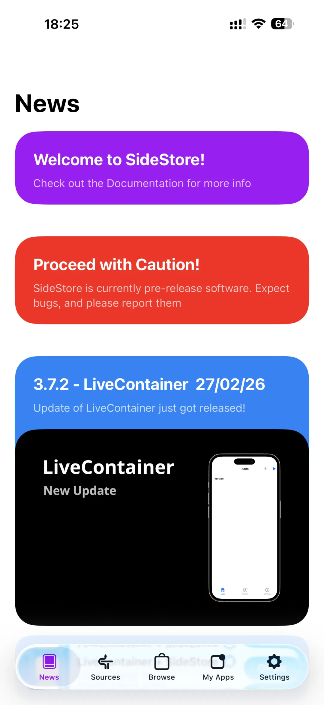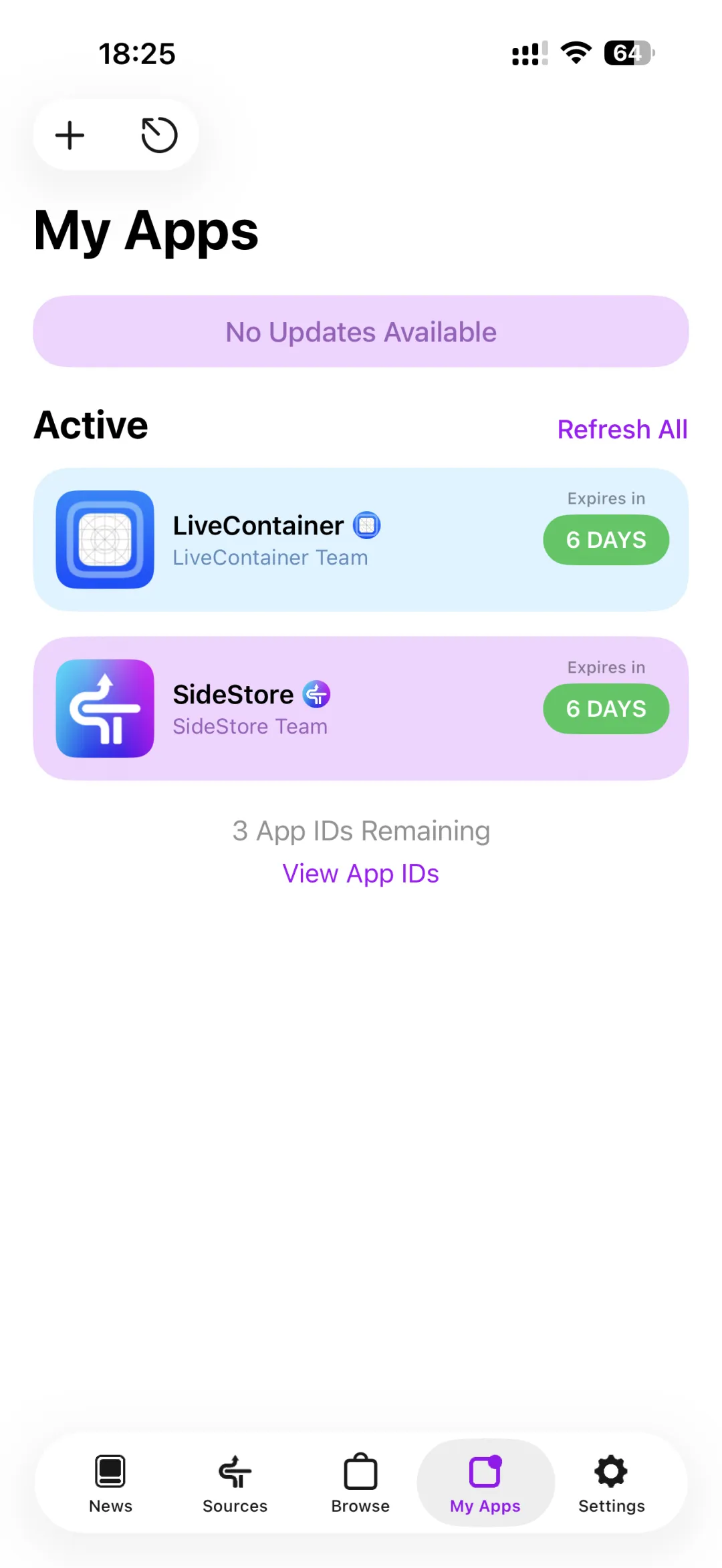 点击➕号旁边按钮,自动闪退后即可进入SideStore