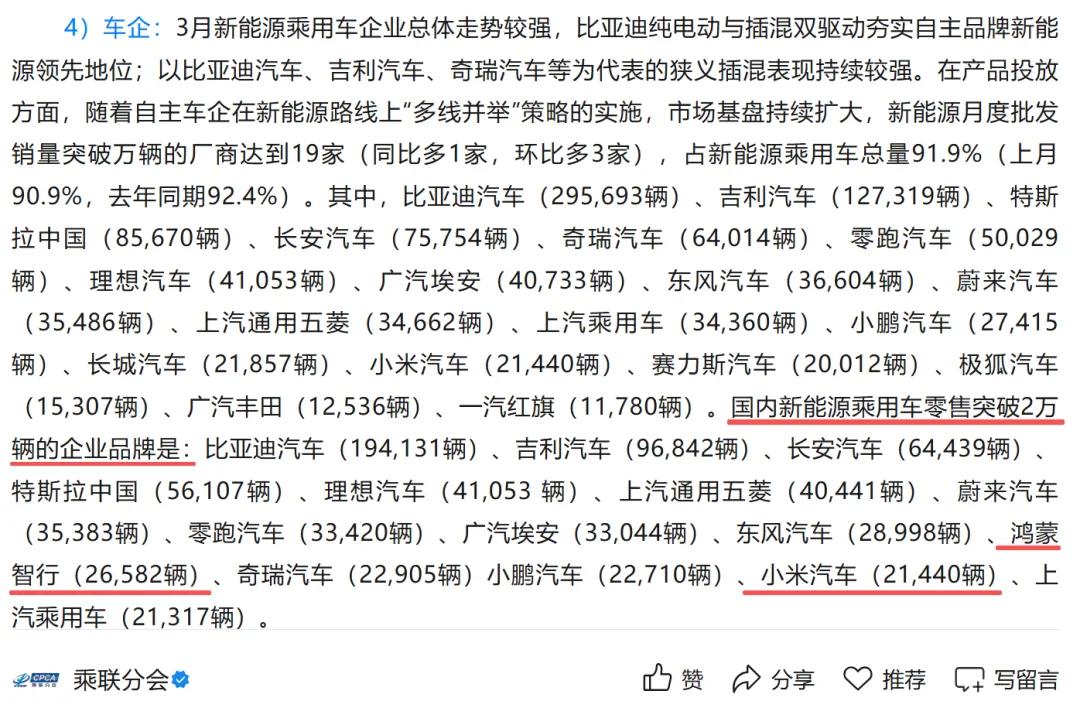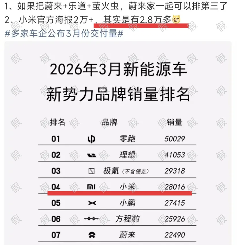 前两天也写过文章对鸿蒙智行五界的销量进行分析,现在官方实锤,前几天网传小米上个月狂砍2.8万辆的不实图片,大家也别再拿出来了。