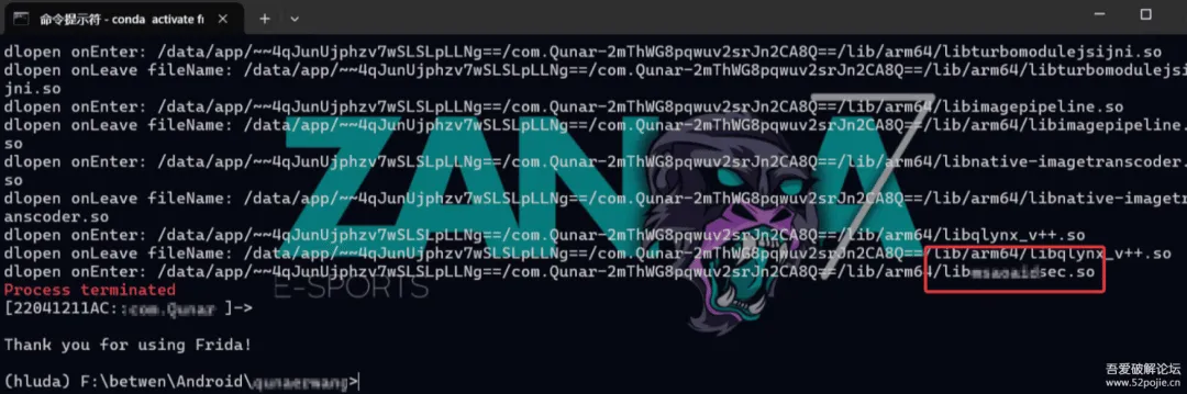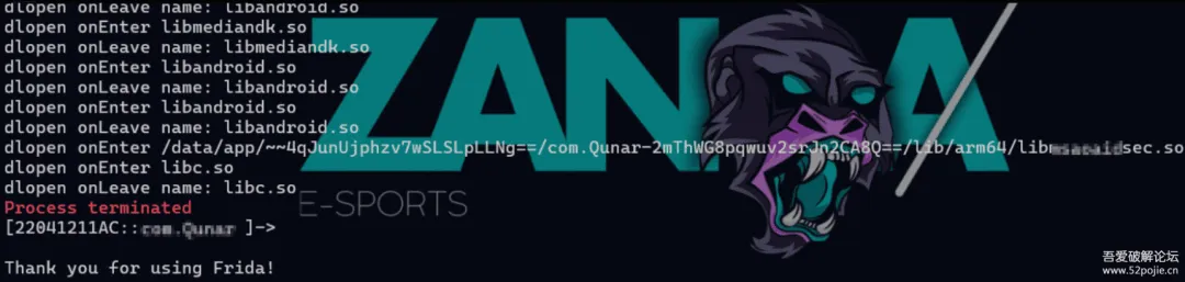 这里直接选用一款使用该sdk的app作为demo展开分析,直接挂载frida之后会直接死掉,所以先检查一下是在挂载了哪个具体的so文件之后挂掉的,定位到该so文件之后挂掉了。