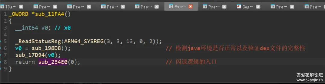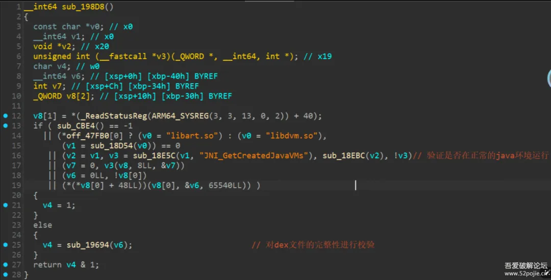 由函数sub_234E0一路交叉引用上去,其上一层有一段检查dex文件完整性的逻辑。