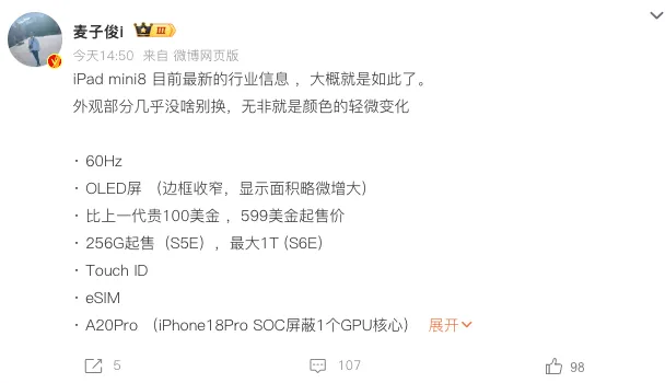 最新的消息显示,大家期盼已久的iPadmini8确实在路上,但配置单看一眼就让人提不起劲。