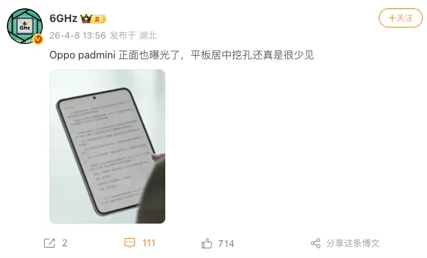 OPPO这边也不甘示弱,曝光出来的Pad Mini走的是差异化路线。