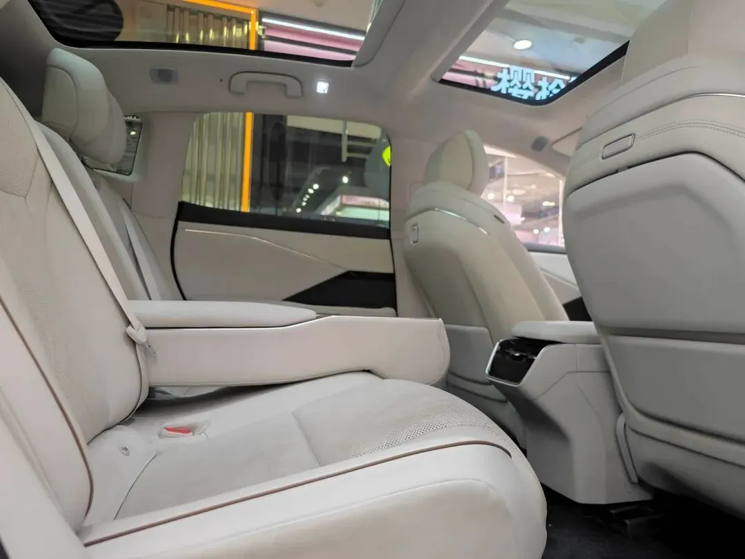 重.点.来了,说驾驶。这个车最.狠的地方,双腔空气.悬架,而且还有.预瞄。我刚才在.店外面.过了一.个减速.带,真的,不夸张,有点魔毯那意思,就是“咚”一下被化掉了。然后我稍微.快一点过.弯,车.身支撑还在,不是那种晃来晃.去的。转向手感偏轻,但.指向性是.准.的,不虚。动力方面电车就不多说.了,踩.下去.不干吼,这点我很满意。