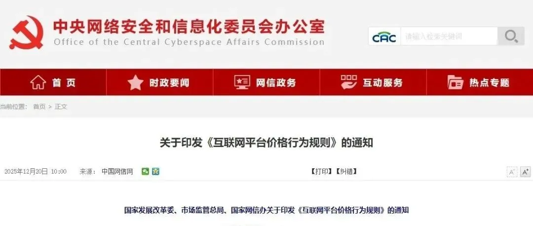 ▲ 三部门联合印发《互联网平台价格行为规则》