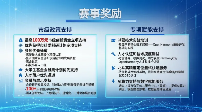 我们面向全球广泛征集具有创新引领性和产业转化力的优质项目,共同探索“PNT+OS+AI”的无限可能。最高100万元创新资金、100+头部投资机构对接、鸿蒙技术实战培训/人才认证摸底测试、北斗相关测试认证服务、AI算力资源绿色通道、人才落户政策扶持直通车……邀您共同揭晓!