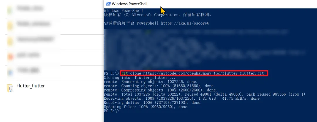 拉取Flutter 鸿蒙分支(必须要用git clone下载,不能下载zip解压,否则会报错!)。