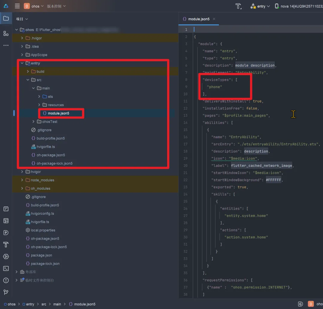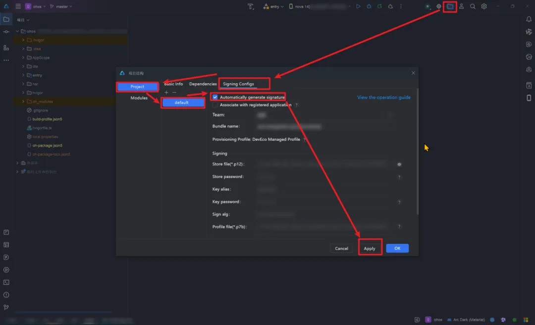 使用安装好的DevEco Studio打开新建的项目内生成的ohos包,连接调试设备进行签名处理。