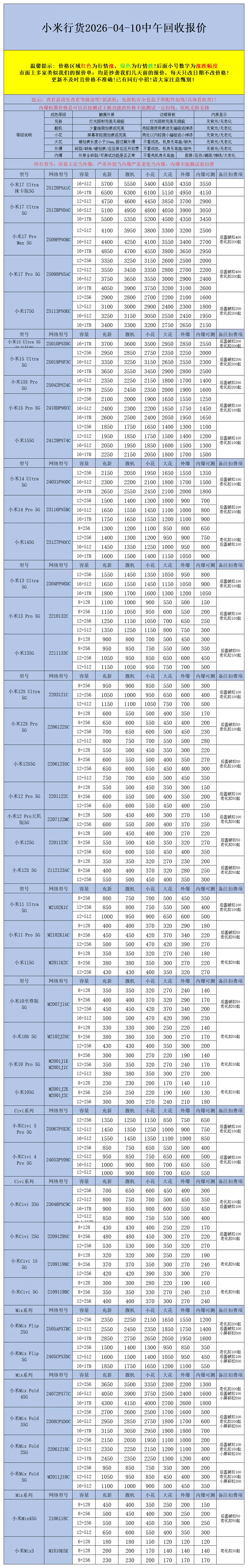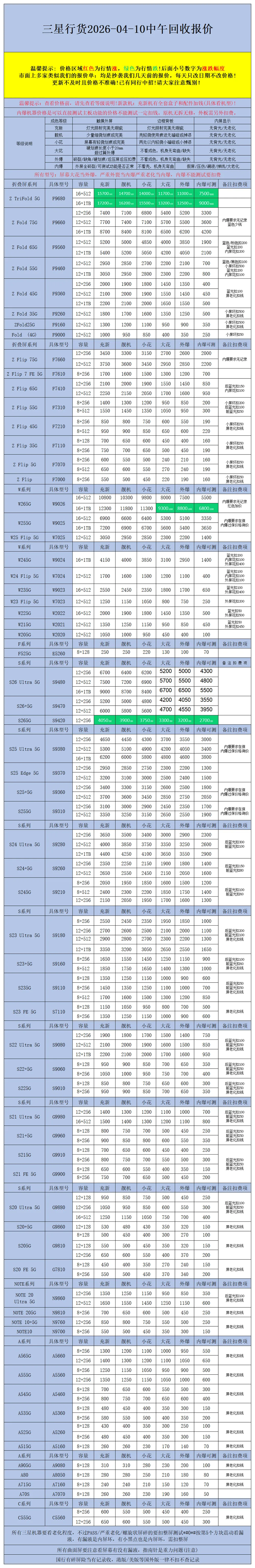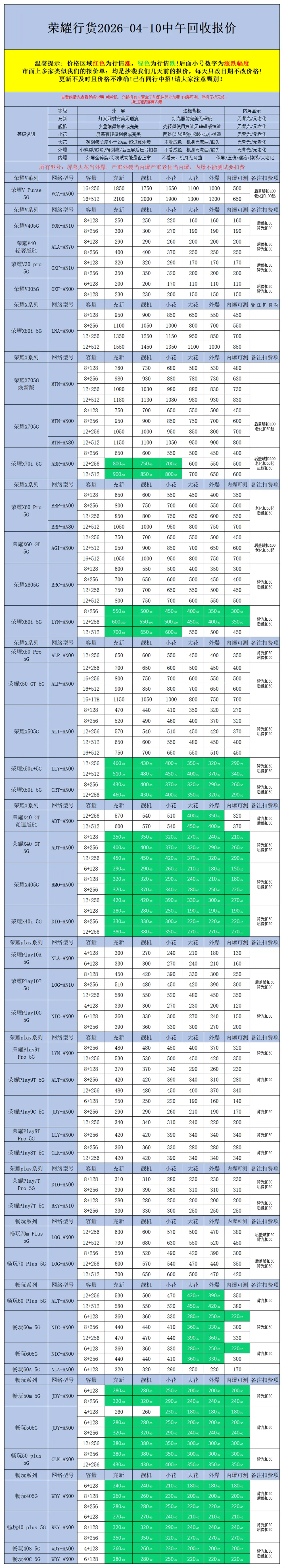 >【安卓】二手机回收报价2026-04-10