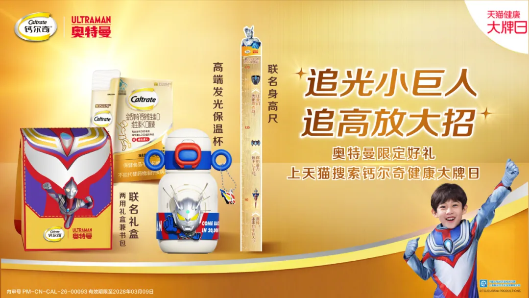 3月23日,钙尔奇携手天猫健康大牌日开启“全龄段骨骼守护”主题活动,联合奥特曼IP推出儿童液体钙专属礼盒,借春季长高黄金期以IP情感连接触达家庭用户。