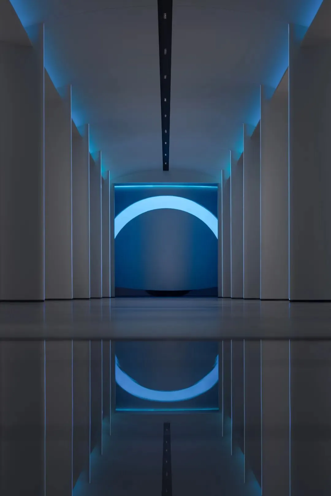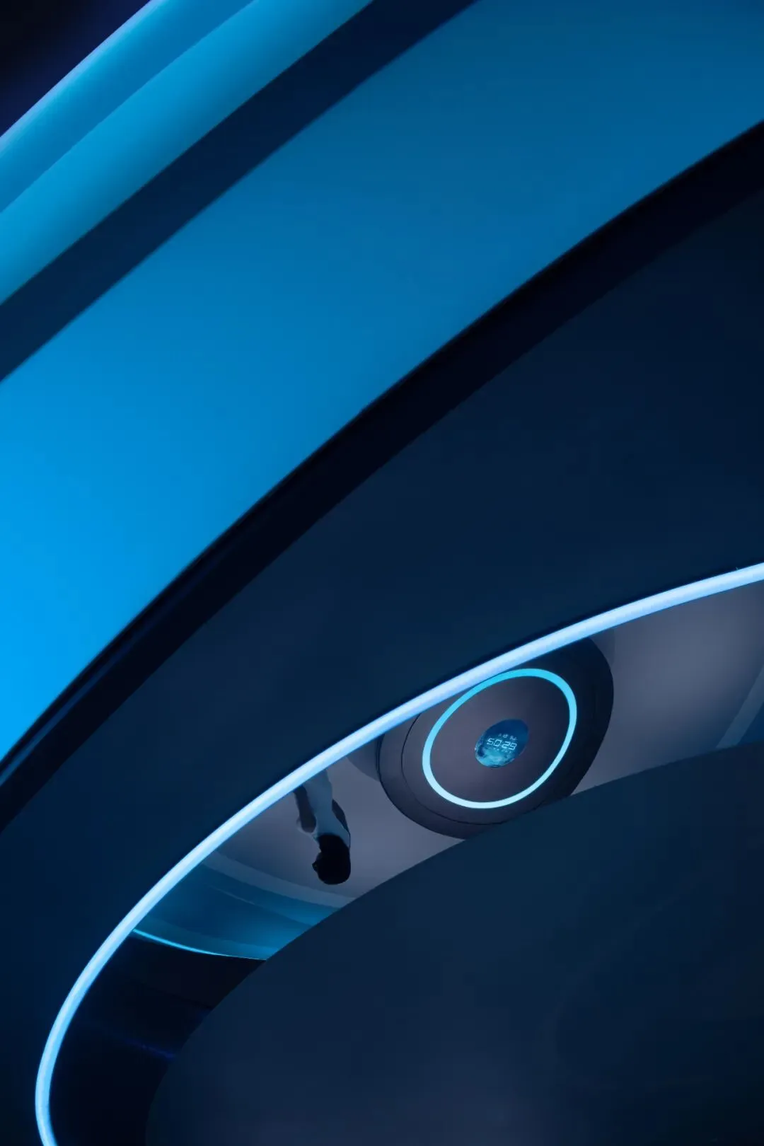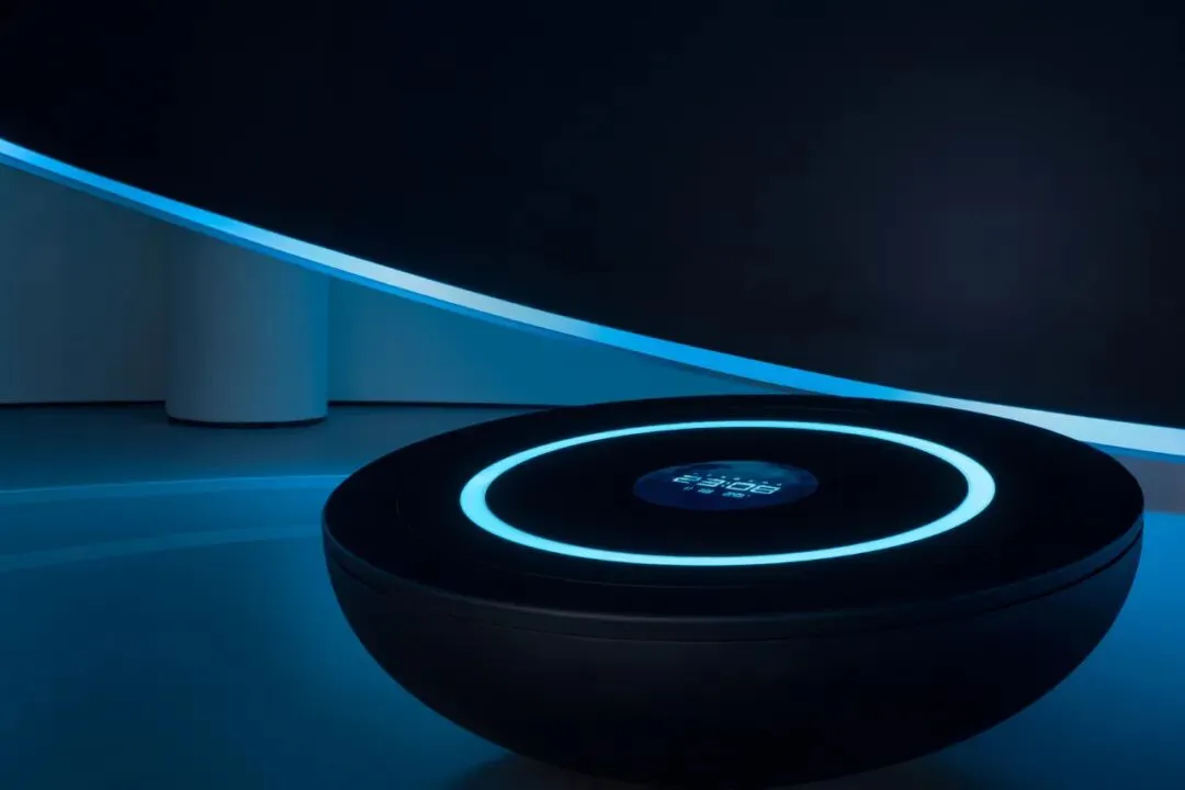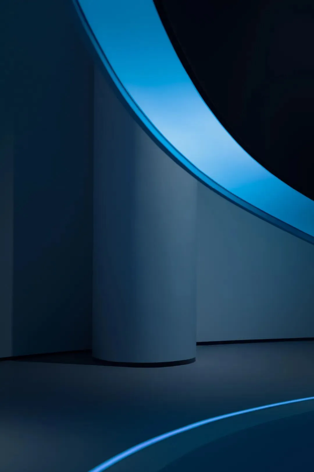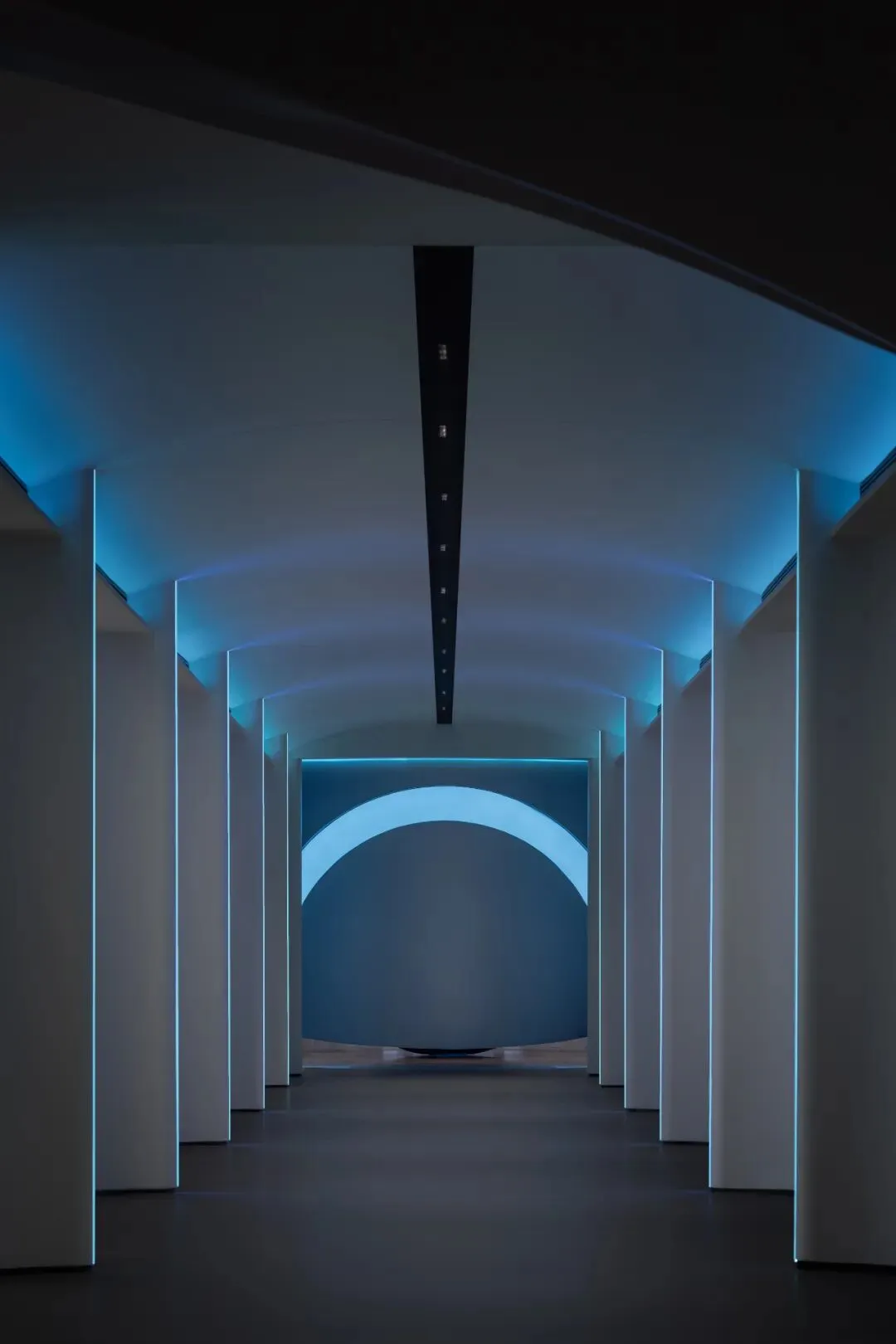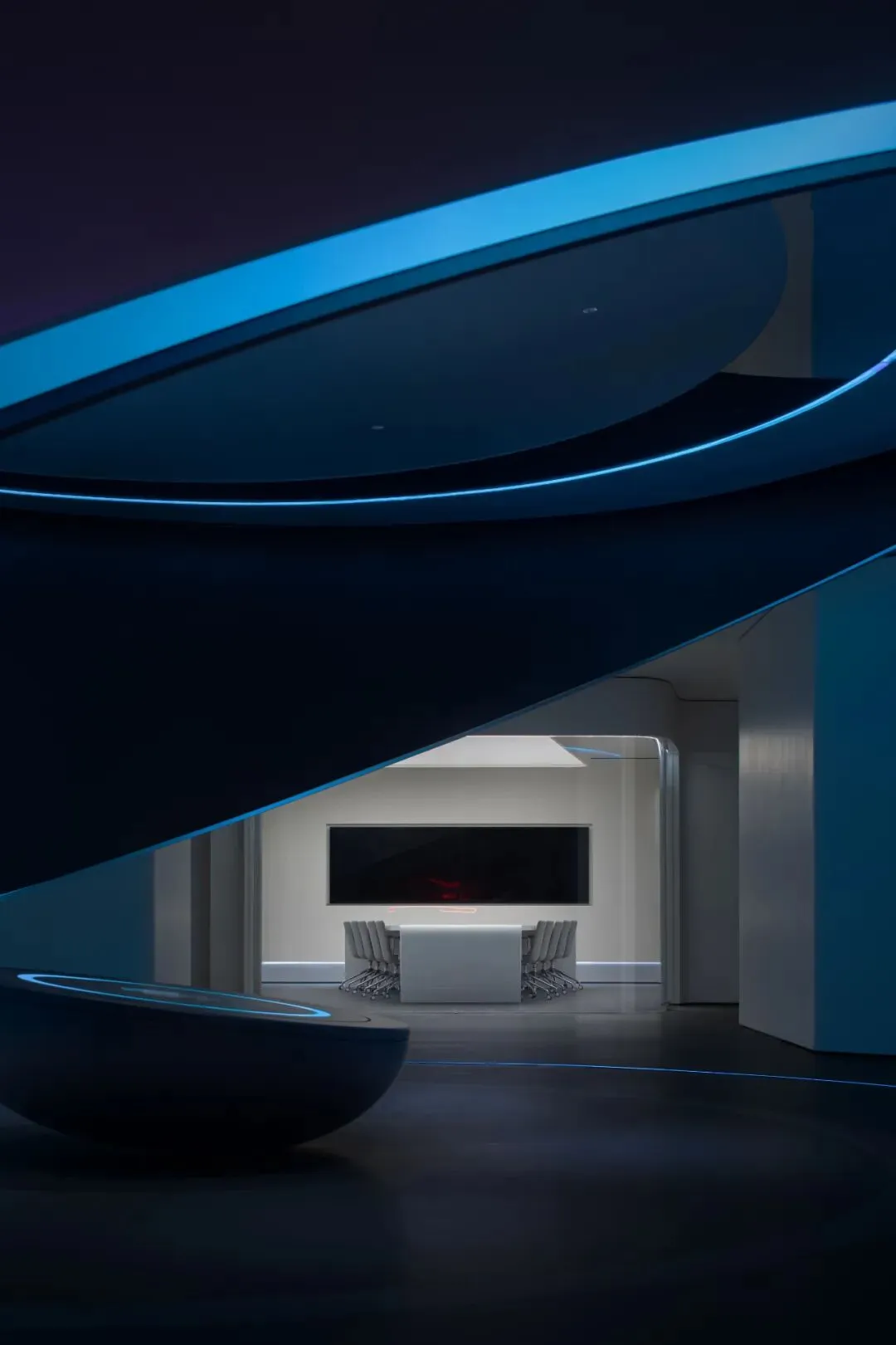 设计师嵌入了一圈一圈环形光带,有的宽而柔和,如同月晕,有的窄如细条,更为凝聚,有的只能瞥见微光。不同的光圈,让这个圆形结构充满了科幻的意味。