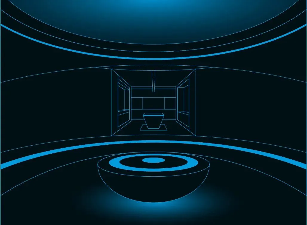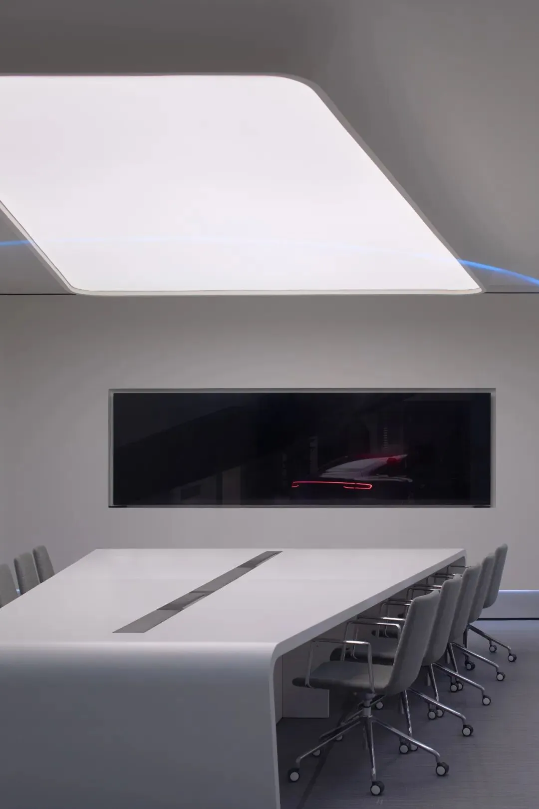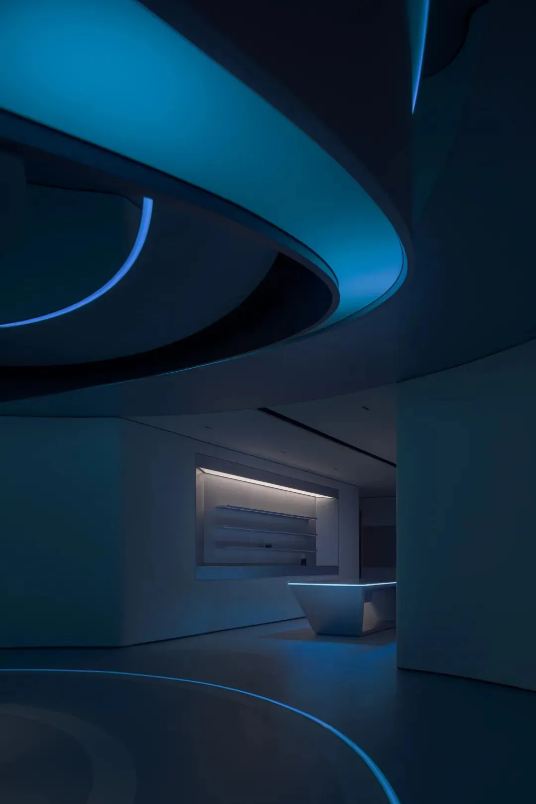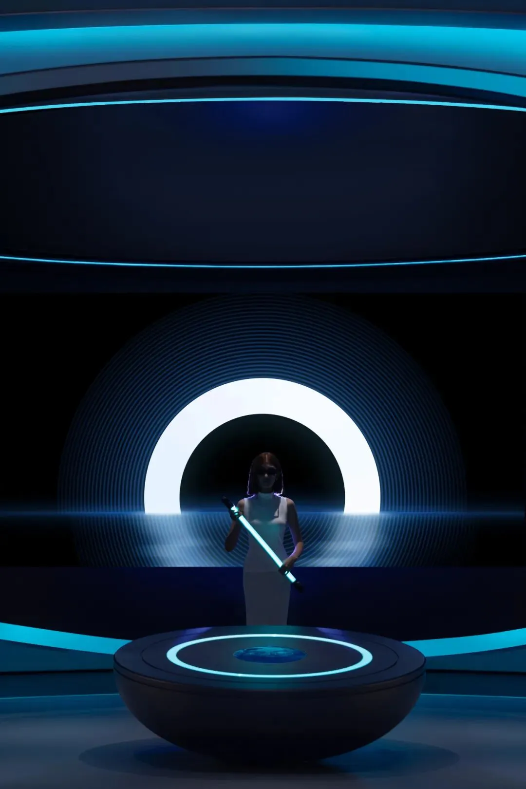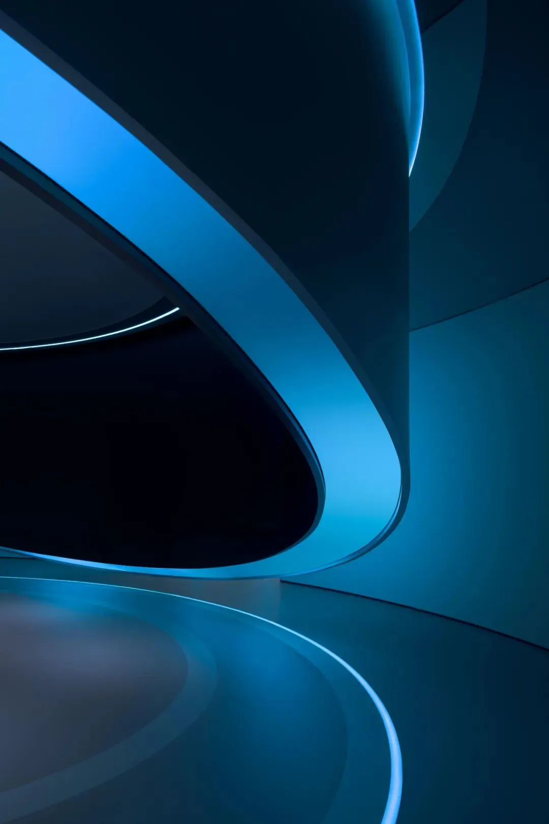 设计师嵌入了一圈一圈环形光带,有的宽而柔和,如同月晕,有的窄如细条,更为凝聚,有的只能瞥见微光。不同的光圈,让这个圆形结构充满了科幻的意味。