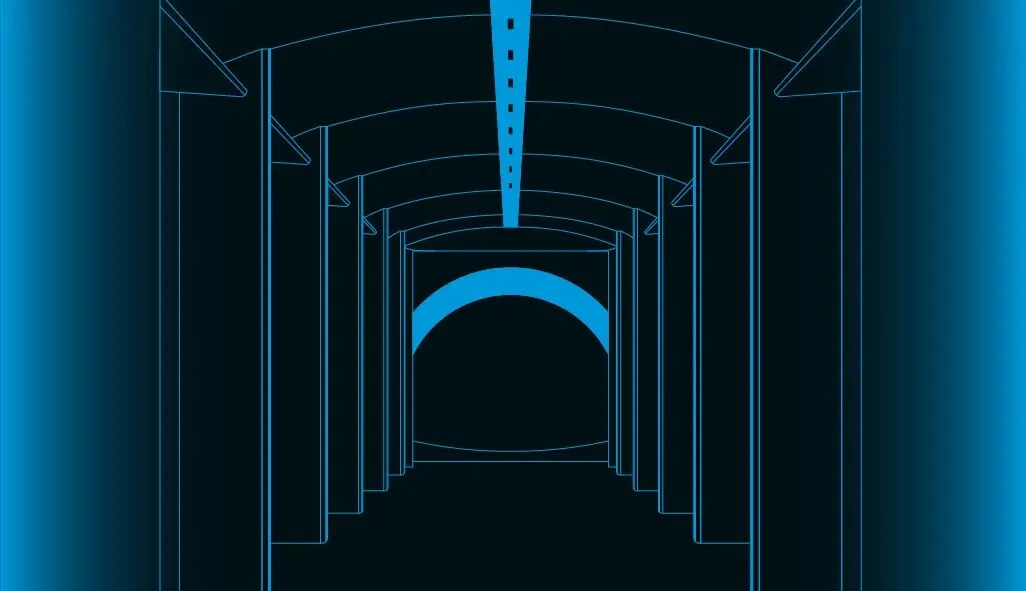 人可以在轴线上行走,也可以随时拐入两侧的“谷地”,探索自己感兴趣的角落。而无论走到哪里,视线总能隐约望见轴线的尽端,那个发着光的圆环,静静地指引着方向。