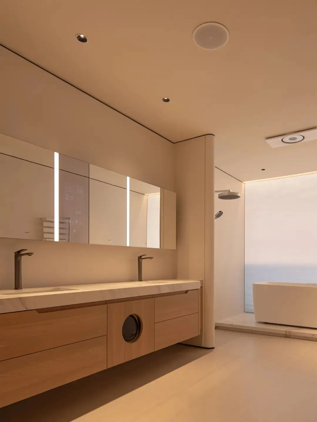 在所有的卫生间里,水温、灯光、窗帘都不需要手动调节,系统早已记住主人的偏好。科技藏在看不见的地方,等待被需要的那一刻,轻轻醒来。