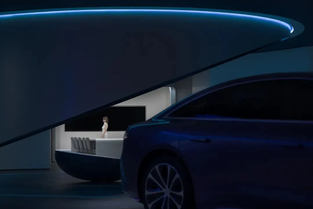 我们从四个层面展开设计思考:符号融合,以花瓣与山海的符号贯穿全空间;动线串联,以公共区为“山海鸿蒙轴”,无断点串联各功能区;场景沉浸,让“功能落地”与“文化赋能”彼此滋养,使科技体验融于在地意境;生活为本,让一切设计最终都围绕着“人+车+家”缓缓展开。
