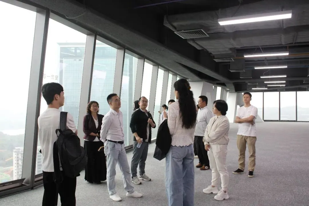 龙岗天安数码相关负责人介绍园区鸿蒙生态建设规划布局,并带领企业代表实地参观。在天安选品中心,近600平方米展厅涵盖3C数码、小家电、生活电器、工艺礼品等品类,面向优质企业开放免费展位,已完成多品类供应链整合。随后,企业代表登上天安中心顶楼停机坪俯瞰大运片区产业布局,参观园区新落成的凯悦嘉轩酒店,感受园区商务服务能级全面提升。