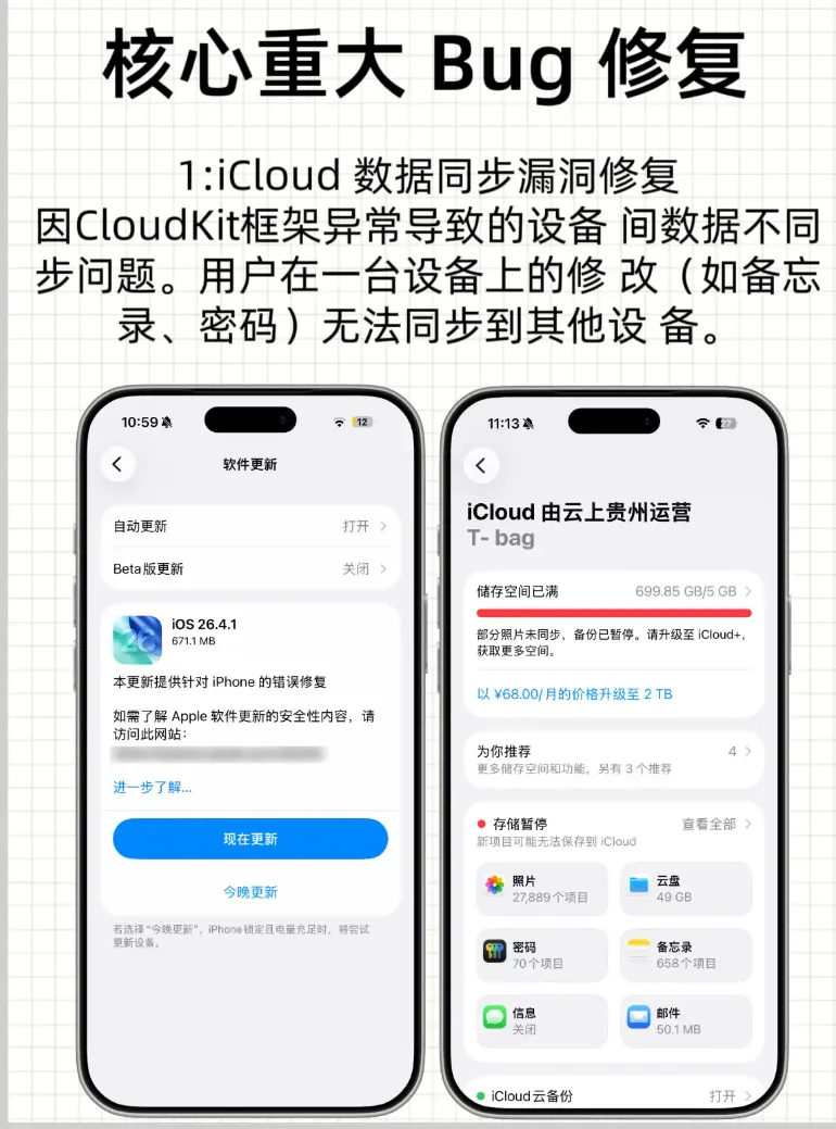 这几天苹果在支持页面把 iOS 26.4.1 写出来了,条目不长,修错补洞,安全项加固,表面像一次常规维护,节奏平稳,更新描述看着很克制。