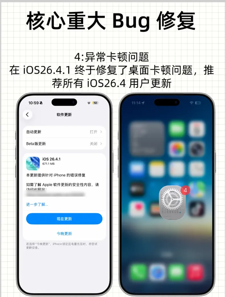 已经用上 iOS 26.4.1 的朋友,评论区写写感受,哪些后台任务更顺了,实时活动的刷新更稳不稳,分享出来给大家做个参考。