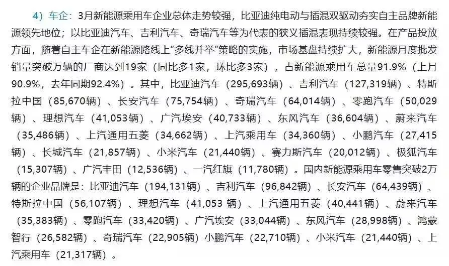 今年三月,全国总共卖出164.8万辆乘用车,虽然比去年同一时期少了大约15%,但跟上个月相比却增长近六成,这主要是因为春节过后很多人集中买车,并不是市场真的回暖了,再看前三个月一共卖了422.6万辆,比去年同期下跌超过17%,整体趋势还在往下走,现在燃油车越来越不好卖,只有新能源车在继续上涨,批发量超过一万辆的厂家有19家,占了总销量的九成以上,说明这个行业已经高度集中在少数企业手里。