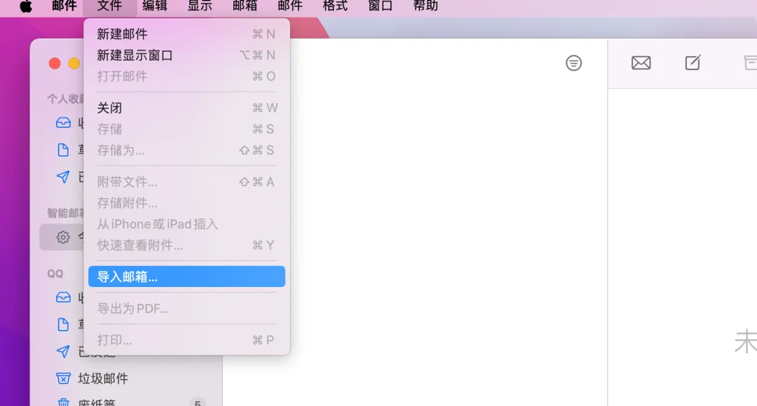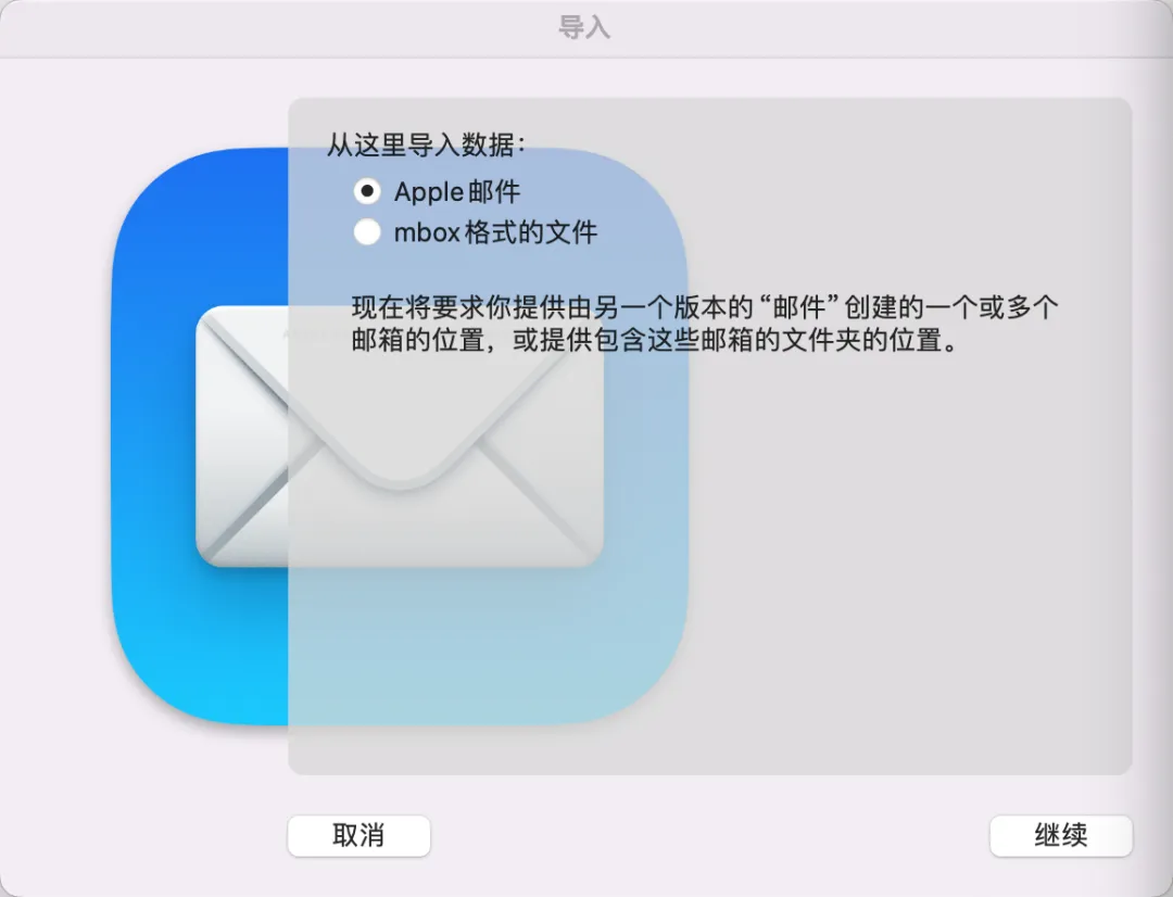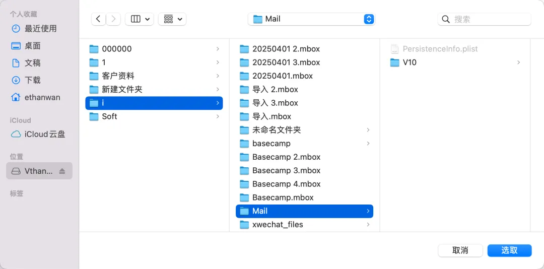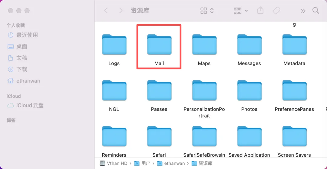 找到外置存储设备上备份好的mail文件夹路径,导入即可。