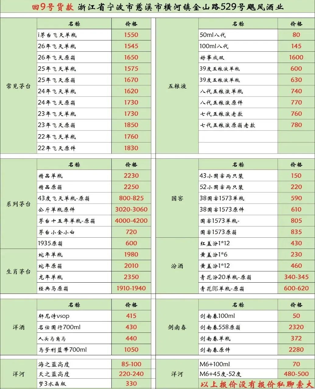 茅台酒水地址:浙江省宁波市慈溪市横河镇金山路529号