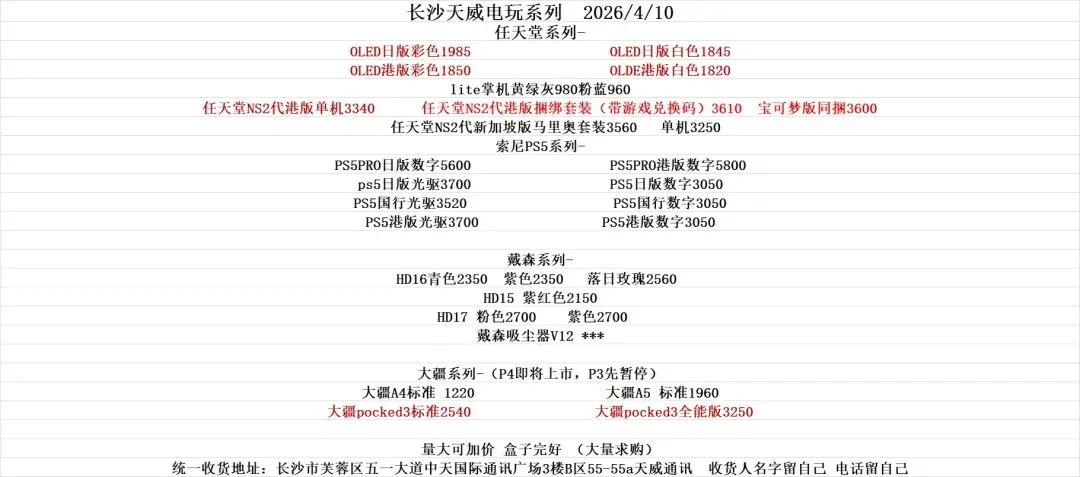 苹果安卓国产手机戴森任天堂长沙回收地址:湖南省长沙市芙蓉区五一大道中天国际通讯广场3楼b区55天威通讯