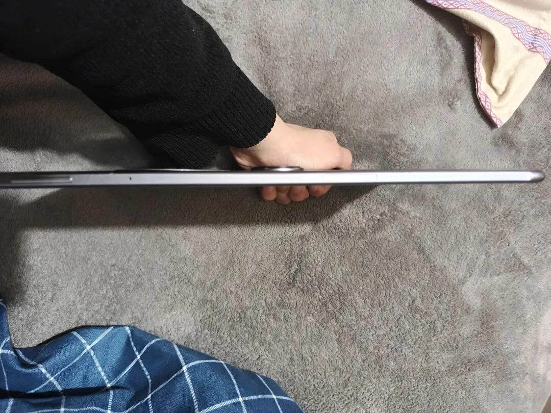 弧形边框贴合手掌,长时间单手握持压力不大。584g的重量在12英寸平板中控制得很好,追剧或阅读不易累手 。