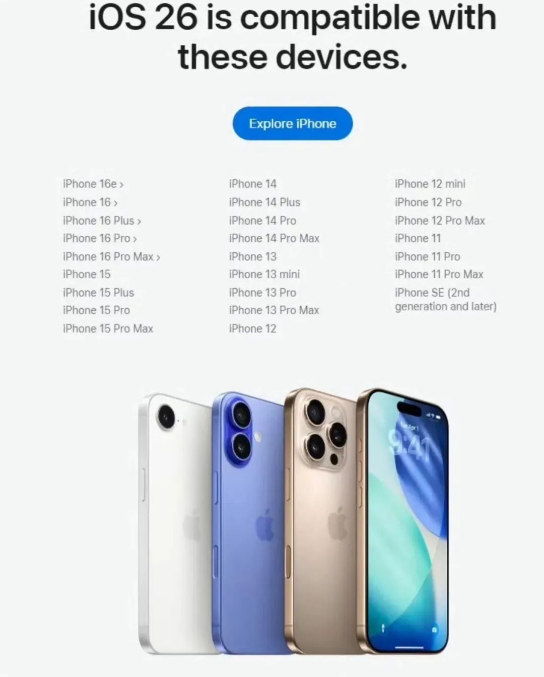 机型覆盖还是沿着26系列的范围,iPhone 11及后续机型,iPhone SE从第二代开始在列,更老的机型不在适配名单里,想更新的先看机型再做安排。