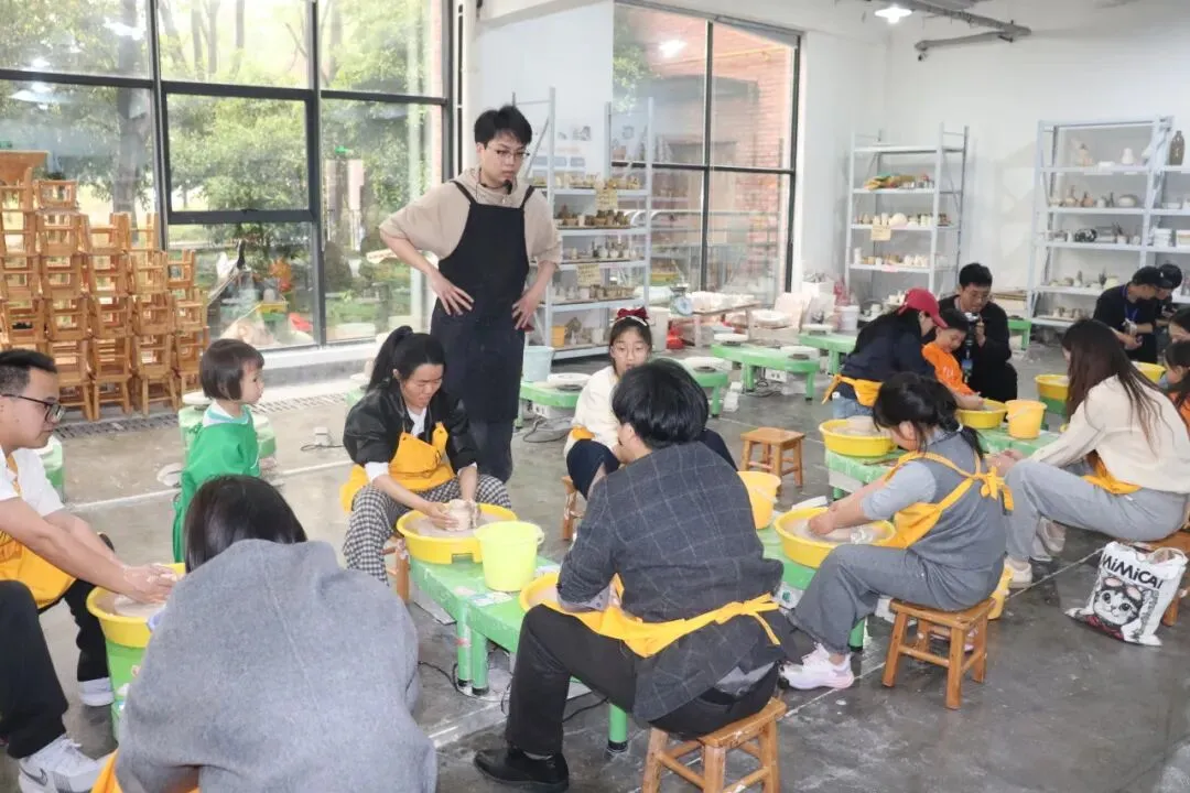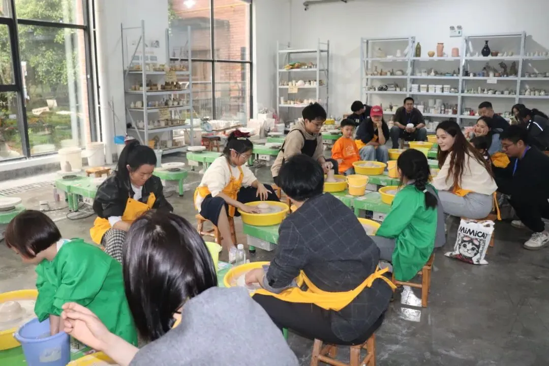 行程末章,归于满盈期盼的陶艺工坊。陶艺老师率先展示一段行云流水的示范:一块陶土,在老师灵巧翻飞的指间旋转、立起、舒展,恍若有了心跳呼吸,形态瞬息万变,惹得孩子们一阵又一阵低低的惊叹。演示毕,亲子共作的温馨时光随即开启。孩子们兴冲冲地撸起袖管,大人们也难掩期待。工坊内笑音轻盈,陶土的微凉与亲情的温热彼此浸润,交织成一幅和谐静好的画面。