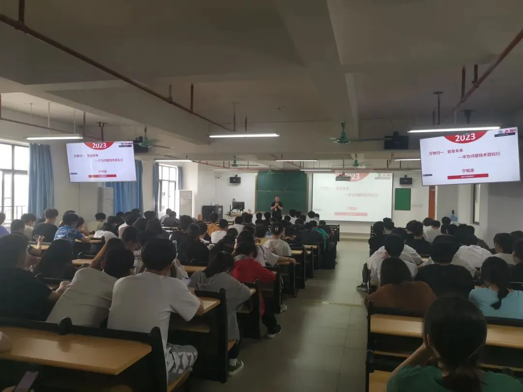 讲座以“科技立本,信创强国”主题。宁明源工程师为同学们介绍了信创相关概念,和我国信创产业的现状及其发展趋势,信创产业规模,信创所带来的巨大就业潜力。然后,重点介绍了华为鸿蒙(HarmonyOS)操作系统。据介绍,华为鸿蒙操作系统是华为公司研发一套智能终端国产操作系统,该系统全场景分布式操作系统核心技术。让同学们了解鸿蒙操作系统的生态以及鸿蒙操作系统在信创中的重要贡献,和鸿蒙操作系统开发者成长计划。宁老师鼓励同学们积极学习鸿蒙操作系统开源生态开发,拓展自身增加就业竞争力的同时也拓展眼界与能力。