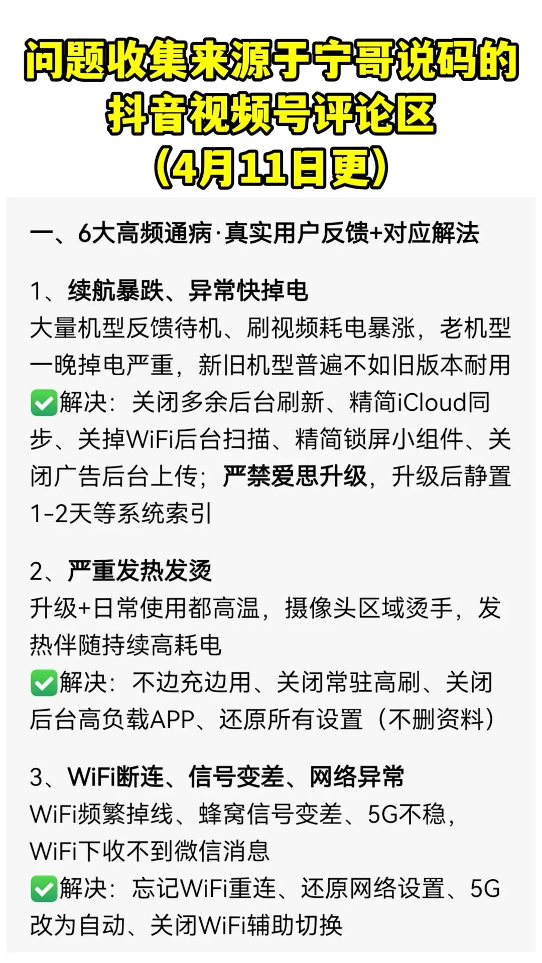 免责说明:本文内容基于抖音、小红书真实用户反馈整理,仅为经验分享,不同机型、电池健康、使用习惯体验存在差异,升级前请务必备份数据,谨慎操作。