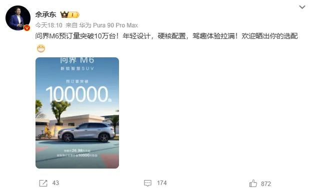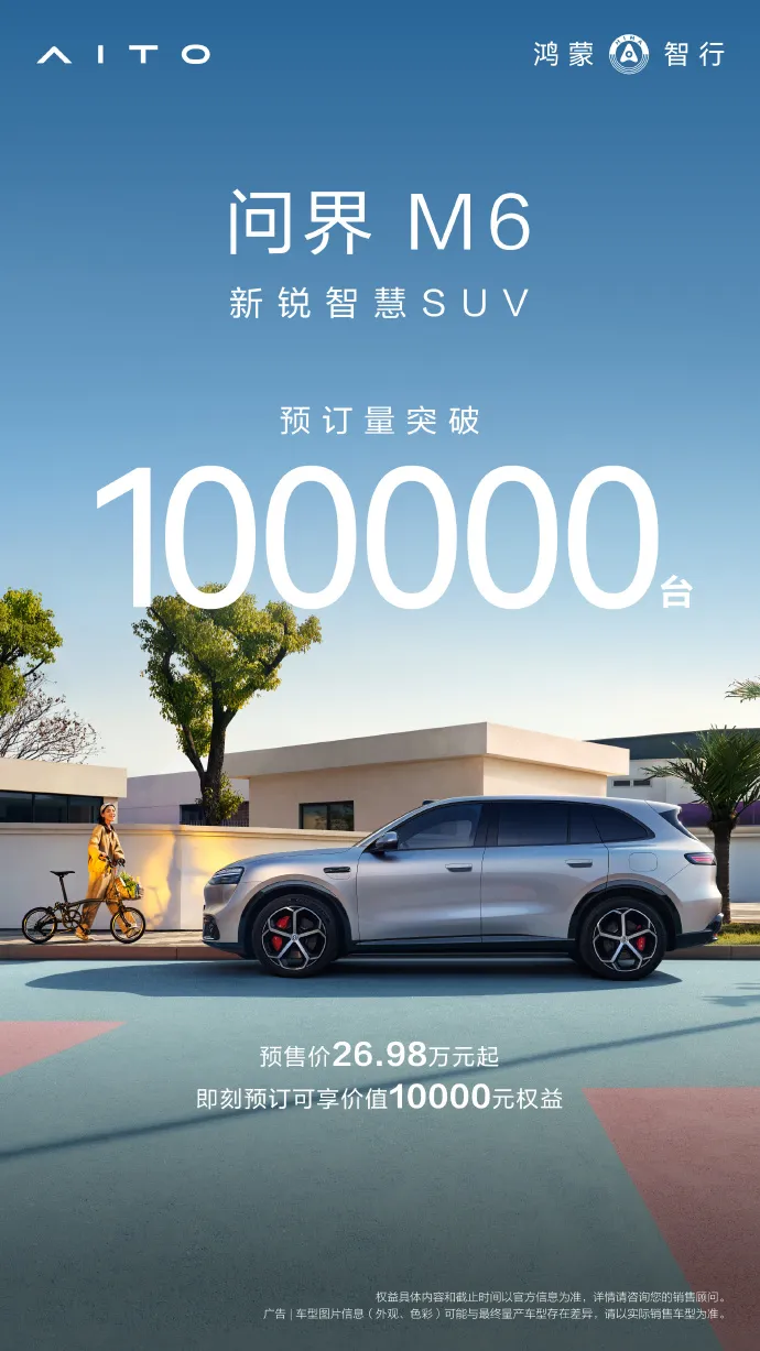 预售价26.98万起,鸿蒙智行问界M6预定量突破100000+