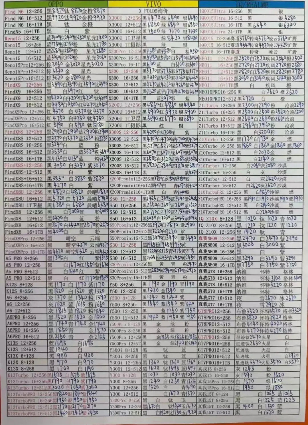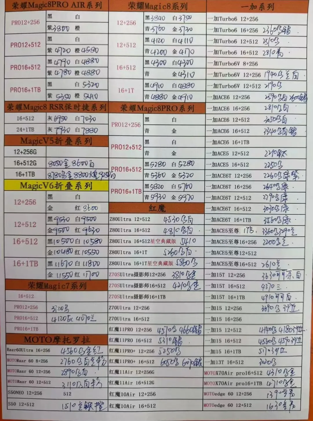 以下报价为深圳华强北商家交易底价,根据不同的提货量有相应的加价!零售:2500元以内的机器在报价的基础上每台加50;2500元以上的机器在报价的基础上每台加100