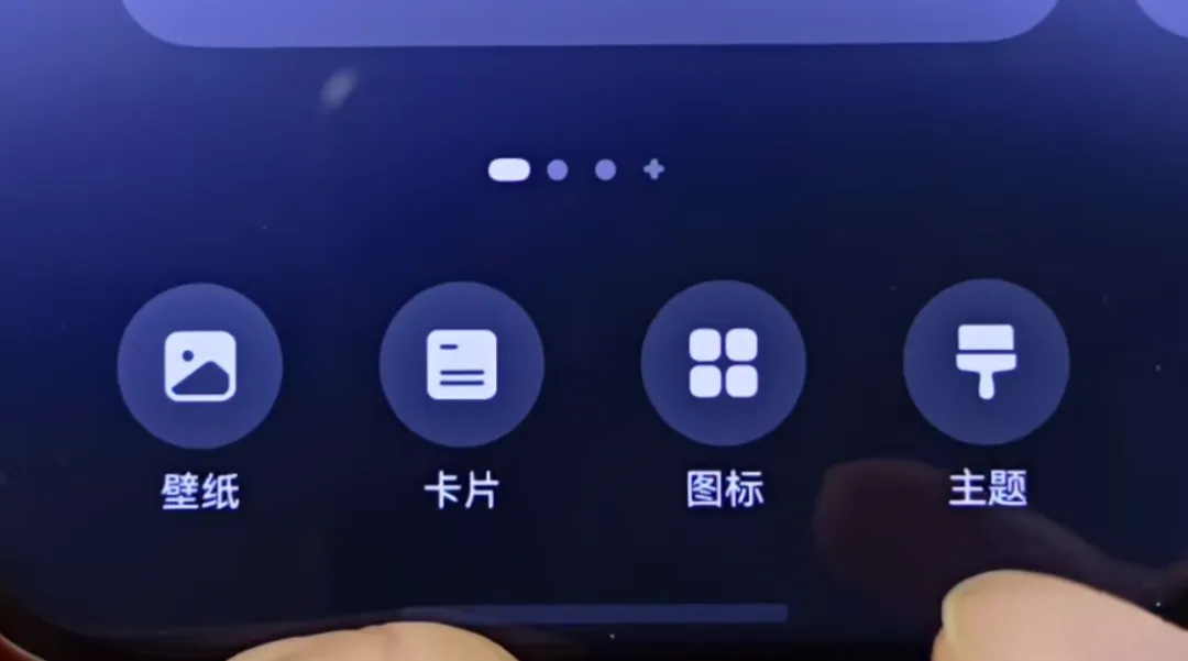 用两根手指在屏幕中间向内捏合,点击下方的图标设置,就能随意调整图标大小,往左推图标变小,往右拉图标变大。
