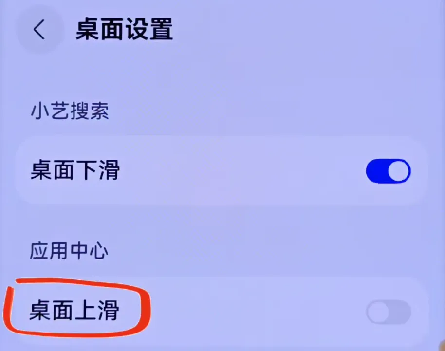 在设置里搜索桌面上滑,开启这个功能后,找应用不用再来回滑动桌面翻找,只需要在桌面任意位置向上轻滑,所有应用就会全部展示出来,查找应用效率大幅提升。