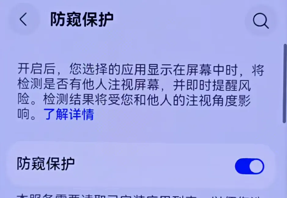 之后浏览照片时,一旦有人从旁边偷看手机,屏幕会自动模糊并弹出隐私保护提示,顶部还会出现提醒小字,及时告知你有人偷看,防止隐私泄露。