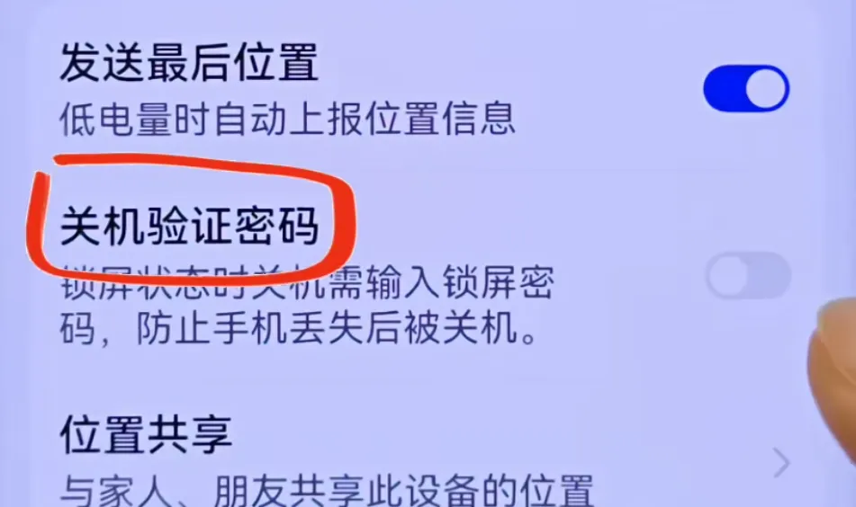 在设置里搜索设备相关选项,开启关机验证密码。开启后,手机在锁屏状态下,想要关机必须输入锁屏密码。