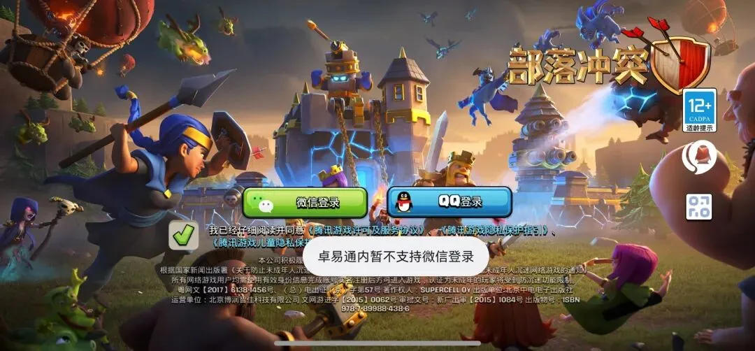 我的《部落冲突》还跑在卓易通(安卓兼容层)里,一点微信登录,直接弹窗提示 :