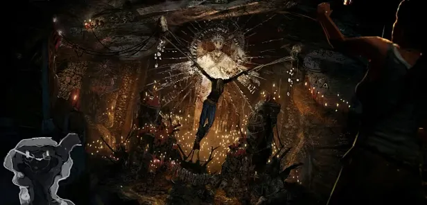 不同于系列前作中身手矫健、无所不能的冒险女王,《古墓丽影9》为我们呈现了一个最真实、最脆弱的劳拉——21岁,刚从剑桥大学毕业,怀揣着对冒险的渴望和对亡父的不解,与志同道合的伙伴登上“坚忍号”,追寻传说中邪马台古国的踪迹。一场狂暴风暴撕碎船只,劳拉被抛向这座被诅咒的孤岛,开局便是绝境:被倒吊在骸骨洞窟、浑身是伤、孤立无援,没有神装加持,只有恐惧、疼痛和必须活下去的本能。
