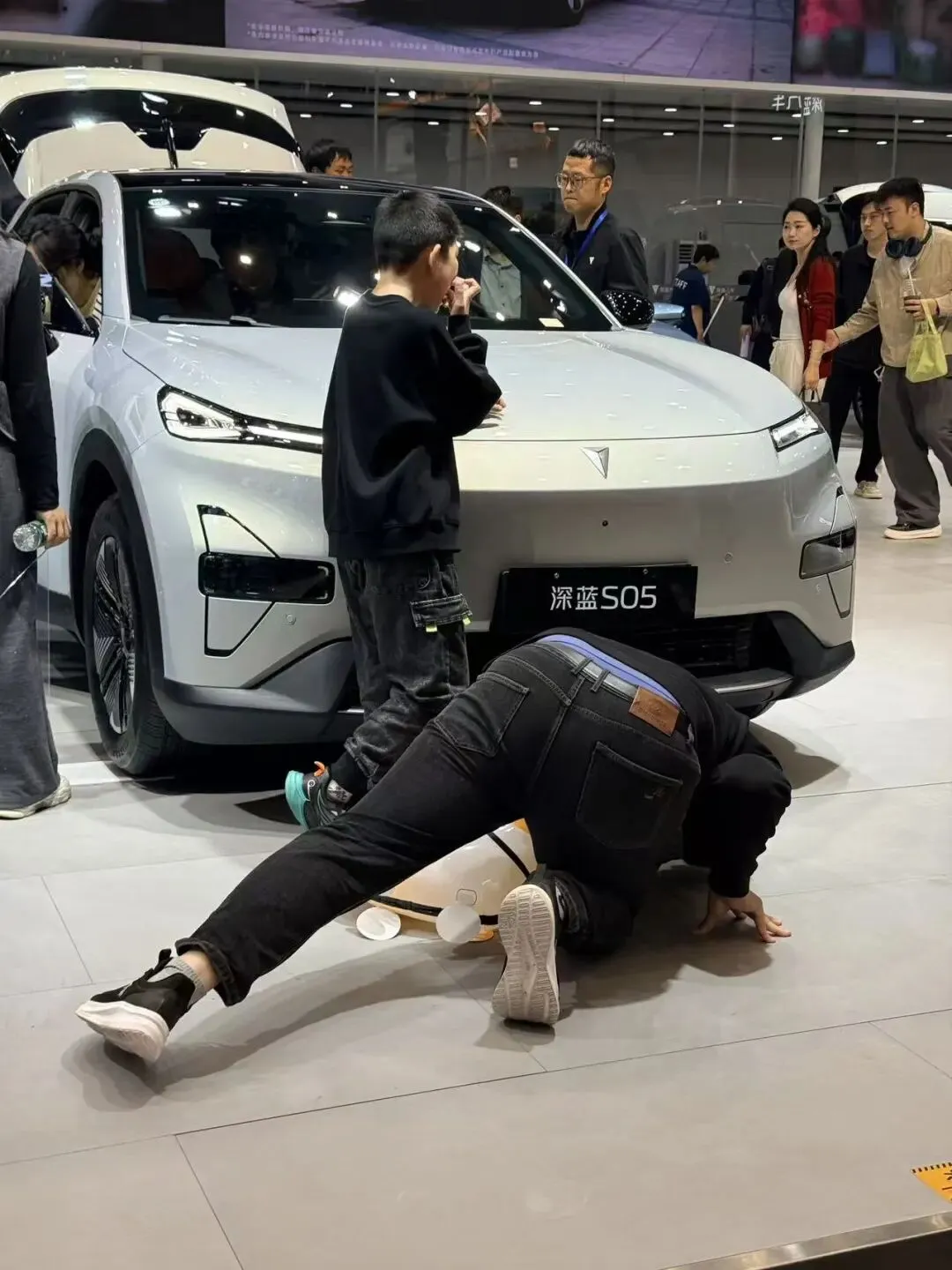 在深蓝汽车展台,记者看到了有趣的一幕——一位中年男士直接趴在了深蓝05的车底下,仔细研究起底盘结构来。“我是做汽车维修的,想看看这车的用料和做工怎么样。”他从车底钻出来后说,“不错,比我想象的要扎实。”