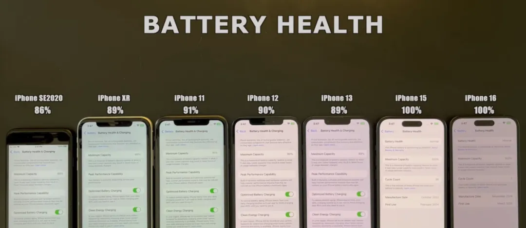 iOS 26.4.1 正式版电池续航测试,共 6 款机型:iPhone SE 2020 ,iPhone 11 ,iPhone 12 ,iPhone 13 ,iPhone 15,iPhone 16 。