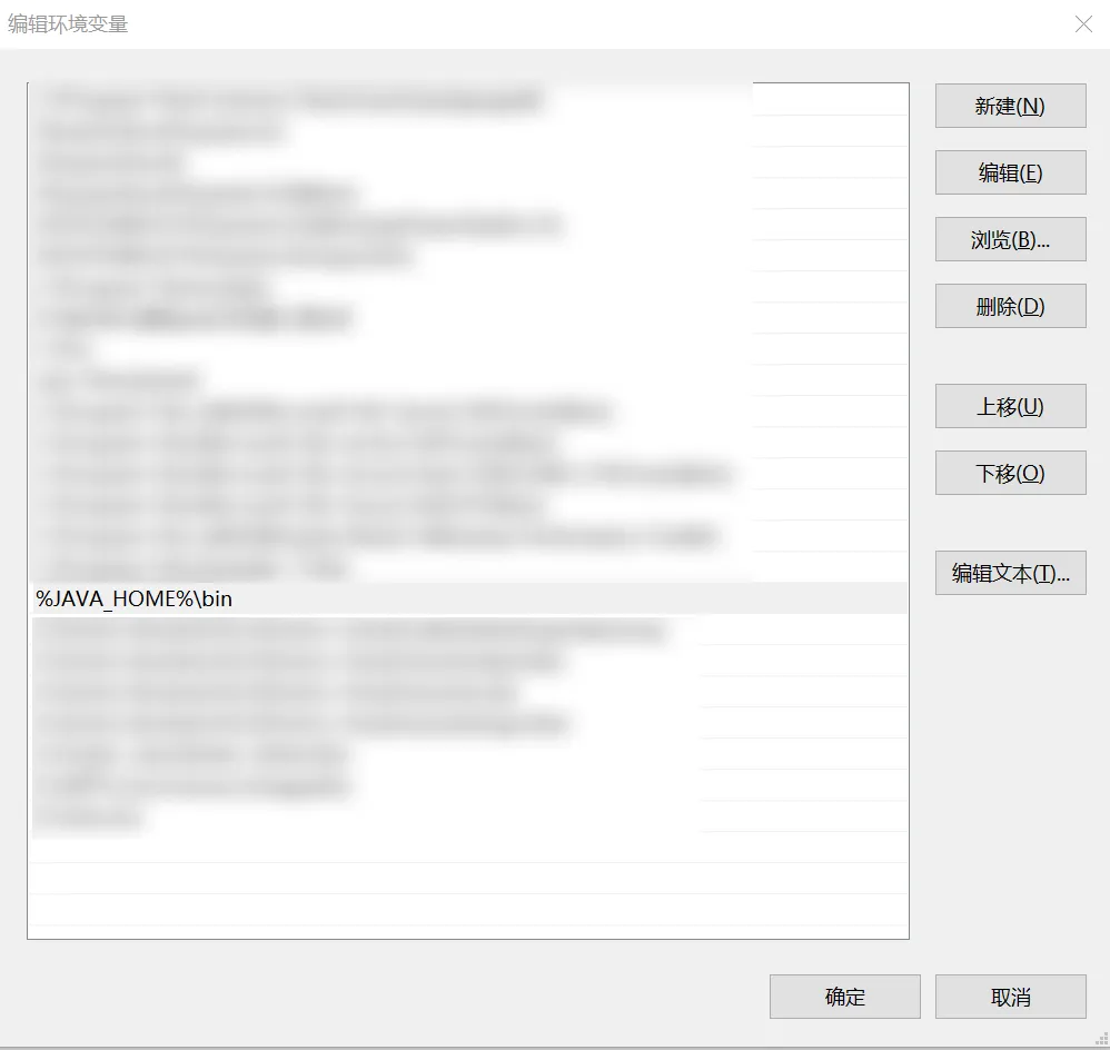 在”环境变量”窗口中,选择 Path 变量,然后选择”编辑”。在编辑环境变量窗口中,选择”新建”,然后输入 %JAVA_HOME%\bin 。最后点击”确定”保存修改。