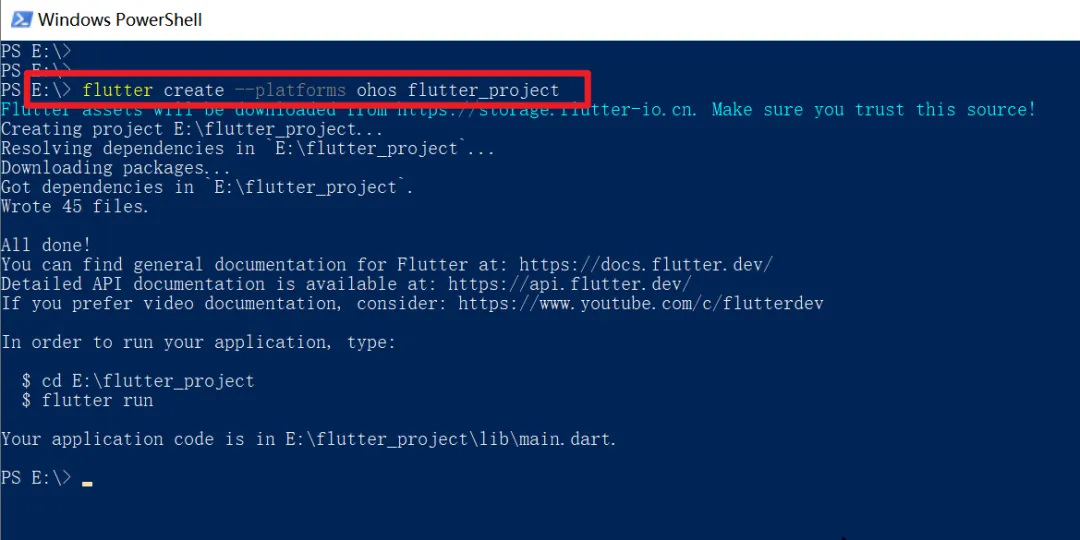 flutter create --platforms ohos <projectName>